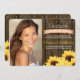 Ajoutez votre image préférée de catégorie supérieure à ces annonces et invitations de photo d'obtention du diplôme de tournesol avec un charme de cru de pays. Les tournesols jaunes d'or Painterly encadrent ce nouvel invitation de diplômé avec un arrière - plan en bois brun de barrière avec l'équilibre de tête de clou qui rappelle un de vieilles granges, une ferme ou le baril. Ajoutez l'année de votre classe terminale sur la conception DE CORAIL de regard de bannière de ruban LAVÉE PAR LUMIÈRE de PÊCHE. La cérémonie et les détails de célébration de partie peuvent être ajoutés au dos de cette invitation. © Chrissy H. Studios, LLC de conception. Tous droits réservés.