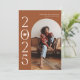Carte de faire-part de remise de diplômes design et moderne à envoyer à la famille et aux amis. Il y a une arche en terre cuite autour de votre photo. Vous pouvez ajouter une deuxième image au verso et le message est modifiable. L'année est écrite sur le côté avec une illustration d'un plafond de graduation à l'intérieur du nombre zéro.