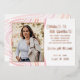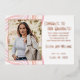 Unique et tendance feuille d'or rose félicitations diplômé faire-part et fête de célébration carte d'invitation, avec un vintage rétro corail rouge, saumon orange et rose rose rousse rayures ondulé arrière - plan. Avec la possibilité de customiser ou de personnaliser avec une photo, le nom du diplômé, l'année de graduation de la classe, le lycée, le futur nom du collège ou de l'université, et l'information de fête de fête. Faites savoir à la famille, aux amis et aux voisins qu'il y a un heureux diplômé prêt à conquérir le monde, et invitation tout le monde à venir célébrer l'heureux événement avec vous !
