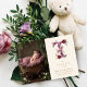This design features a dreamy “T” initial decorated with an elegant gold glitter effect, accompanied by a playful bunny and surrounded by romantic flowers in soft burgundy tones, creating a harmonious, tender, and charming aesthetic. The combination of the initial, the whimsical bunny, and the floral details provides a luminous, sophisticated, and joyful style, perfect for announcing the arrival of a newborn in a memorable and enchanting way. Each element has been carefully illustrated, conveying warmth, romance, refinement, and a touch of whimsy, making the card stand out for its beauty and charm.