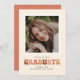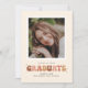 Ce faire-part de graduation amusant d'inspiration rétro présente le mot diplômé écrit quatre tons de terre. Il a de l'espace pour une photo à l'avant comme à l'arrière. L'arrière comprend également de l'espace pour plus de texte.