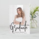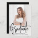 Faire-part moderne de graduation avec votre photo verticale sur le devant avec "Graduate" affiché dans une superposition manuscrite en noir. Personnalisez le devant du faire-part de remise de diplômes avec le nom du diplômé, le nom de l'école et l'année de remise de diplômes. La simple faire-part de graduation inverse pour afficher une photo supplémentaire avec de l'espace fourni pour inclure les plans futurs du diplômé, les détails de graduation, etc. Les 2 faire-part de remise de diplômes photo sont parfaits pour les diplômes du secondaire et collégial!