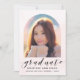 Envoyez à votre famille et à vos amis une carte de faire-part de graduation 2025 personnalisée et florale pour les wow. Ce design modèle moderne comprend une photo en forme d'arche pour vous permettre de passer à la vôtre sur un arrière - plan de lavage à l'aquarelle. En dessous de votre photo est le mot "Graduate" dans la typographie manuscrite moderne et votre nom, lycée et année à personnaliser. Le dos de la carte est assorti d'un lavement à l'aquarelle rose. Conçu par Susan Coffey.