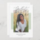 Cette carte de faire-part photo élégante de graduation comporte une élégante lecture de typographie, "Graduate" en haut, avec un bloc de couleur (en vert sauge clair) derrière le modèle photo. Deux petites lignes de couleur assorties ont déclenché le texte en bas. Le dos de la carte contient un autre modèle photo, ainsi que d'autres modèles de texte pour une personnalisation plus poussée. Envoyez ces annonces simples et modernes à votre famille et à vos amis pour célébrer votre grand !