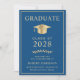 Élégant classique bleu no photo-collège de diplôme avec une casquette de diplôme d'or et la typographie moderne or pour le nom du diplômé, année de classe, école, collège ou université, diplôme et majeur ou distinctions.