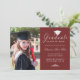 Envoyez à votre famille et à vos amis une carte de graduation photo personnalisée unique avec votre photo personnalisée à gauche et à droite un casquette blanc avec le mot "Graduate", classe/année, nom et autres détails de la cérémonie dans la calligraphie en écriture blanche formelle pour personnaliser sur un arrière - plan marron. Conçu par Susan Coffey.