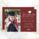 Faire-part Élégant Maroon blanc Script Casquette photo Gradua