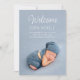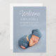 Carte faire-part de naissance photo moderne 2 avec texte blanc. Cette élégante faire-part bébé est dotée d'une photo de bébé bleu roux, d'un élégant lettrage "Welcome", du nom du bébé et des détails de naissance dans une police sans serif. Dos avec photo personnalisée et texte faire-part de naissance en gris. Utilisez le modèle design facile à customiser et créez un moment magique unique pour votre famille et vos amis. © y.BEE PAPERIE #ZazzleMade #annonce de naissance #carte d'annonce de naissance #annonce de naissance #annonce de naissance