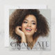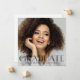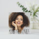 Cartes de faire-part "Photo" carrés modernes et élégantes, avec éléments de design de sombres transparents, style de mode moderne lisant "GRADUATE", avec typographie minimaliste. La photo du diplômé sur le devant de la carte met en évidence toute la surface. Le dos de la carte offre des espaces de texte personnalisés pour des informations sur votre graduation et votre futur voyage. Idéal pour les personnes âgées du secondaire, du collège et de l'université.