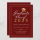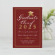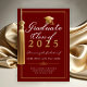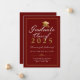Annoncez votre diplôme d'études supérieures en style avec cette élégante classe personnalisée de 2021 carte de faire-part. Ce design de typographie formel comprend les mots Graduate Class de 2025 avec votre diplôme, nom, école, et date pour personnaliser en or et blanc script accentué par un faux casquette diplômé en or et encadré en or sur un arrière - plan rouge bordeaux. Le dos de la carte est vert. Conçu par Susan Coffey.