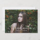 Annonces de graduation élégantes montrant la photo horizontale du diplômé avec "Graduate" en lettres blanches. Personnalisez le devant du faire-part de remise de diplômes en y ajoutant le nom du diplômé, le nom de l'école et l'année de remise de diplômes. La faire-part s'inverse pour afficher un motif à bande dessiné à la main noir et blanc.