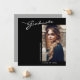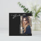 Cette carte moderne élégante de faire-part de graduation, présente des éléments de design du texte moderne fusionné avec un élégant script de calligraphie. La photo verticale des diplômés est placée astucieusement sur le devant de la carte tandis que le dos de la carte offre des espaces de texte personnalisés pour des informations sur la graduation et le futur voyage. Les Arrière - plans sont noirs sur l'avant et gris argenté sur le dos ou customisent facilement ces couleurs de votre choix. Pour voir d'autres articles comme celui-ci, visitez mon magasin ici à "www.Zazzle.com/LakeViewCardCo". Merci