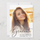 Annoncez les réalisations de votre diplômé grâce à ce chic faire-part bleu. Leur photo remplit la carte de "Graduate" écrit sur le dessus dans un script élégant. En dessous, ajouter leur nom, l'école et l'année de classe. Au dos, ajoutez une photo supplémentaire et votre message personnalisé en lettres blanches modernes.