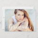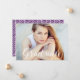 Élégant faire-part de graduation avec "Graduate" affiché dans une superposition de script blanc. Personnalisez le devant du faire-part moderne de graduation photo avec votre photo horizontale, nom et année de graduation. La faire-part s'inverse pour afficher un motif d'épine-épine violet et blanc dessiné à la main.
