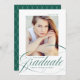 Annoncez le jalon de votre diplômé avec cette élégante faire-part de remise de diplômes, en présentant leur photo de haut niveau à côté de la superbe calligraphie verte moderne. Personnalisez la conception en ajoutant le nom du diplômé, le nom de l'école et l'année de remise des diplômes, créant une façon sophistiquée et mémorable de célébrer cette réalisation spéciale. Parfait pour les diplômés du secondaire et du collège, ce faire-part offre un look raffiné à partager avec des amis et la famille, ce qui en fait un beau souvenir pour les années à venir.