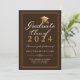 Annoncez votre diplôme d'études supérieures en style avec cette élégante classe personnalisée de 2023 carte de faire-part diplômée. Ce design de typographie formel comprend les mots Graduate Class de 2023 avec votre diplôme, nom, école, et date pour personnaliser en or et blanc script accentué par un faux casquette diplômé en or et encadré en or sur un arrière - plan bleu marine. Le dos de la carte est bleu. Conçu par Susan Coffey.