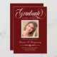 Annoncez votre diplôme universitaire à votre famille et à vos amis en style avec cette élégante carte de faire-part photo personnalisée. Ce modèle design moderne dispose d'un élégant script de calligraphie blanche qui dit "Graduate Class of 20XX" avec votre nom, université, diplôme et date pour personnaliser sur un arrière - plan marron rouge. Félicitations pour votre diplôme ! Conçu par Susan Coffey.