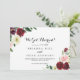 Ce faire-part de calligraphie florale de printemps rose bordeaux présente un beau design rustique. Le design peint à la main est composé de feuilles verts, de rose éblouissant, de rousse, de violet, de rouge, de blanc et de roses bourguignons éblouissants, de pivoines soigneusement disposées dans de petits bouquets mignons. Personnalisez la carte avec les détails de votre mariage, et utilisez le modèle au dos pour annoncer un changement d'adresse, pour les informations de réception, ou tout autre détail que vous souhaitez partager.