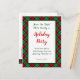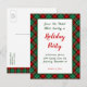 Un jour férié modifiable Enregistrer le modèle de carte postale Date avec des lettres de script et un motif arrière - plan rétro de plaid rouge et vert et de la place pour vos informations de fête sur le devant, et votre adresse de retour sur le dos. Ou changez les polices, le dimensionnement et plus encore, économisez même votre conception pour plus tard.