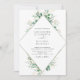 Eucalyptus Verdure Botanique et Vert et Or Géométrique Aquarelle Printemps Invitations sur arrière - plan Blanc - comprend belle et élégante typographie script avec feuilles botaniques modernes et verdure pour la célébration spéciale de mariage.