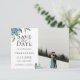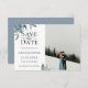 Fleurs aquarelles bleu poussiéreux avec feuillage botanique de jardin, carte de faire-part de mariage photo. Conçu pour correspondre à notre collection botanique bleu poussiéreux.