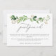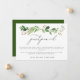 Un design simple et élégant pour annoncer un changement dans vos plans de mariage. Caractéristiques de belles branches de feuilles d'eucalyptus aquarelle verte, avec un titre "reporté" en calligraphie moderne gris foncé, votre message en police sans empattement gris foncé, sur fond blanc. Le verso est en vert forêt uni.