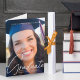 Cette carte de félicitations pliée pour le diplôme présente une écriture blanche manuscrite sophistiquée sur une photo pleine page chic de votre diplômé. Personnalisez cette carte de félicitations avec une 2ème photo de lycée, de collège ou d'université à l'intérieur, ainsi que les détails de votre finissant. L'image au verso est superposée d'un blanc pur élégant pour un style moderne pour votre carte.