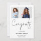Félicitations Script 2 Photo 2023 Graduation. Style moderne et contemporain pour que chacun connaisse les nouvelles de votre grade. Remplacez simplement les deux exemples de photos par les vôtres et personnalisez-les avec le nom de votre diplômé, le lycée, l'année et le message au dos. Félicats est dans un élégant scénario.