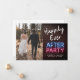 Faire-part d'annonce de mariage intime ou d'élopement moderne et invitation à une réception pour informer la famille et les amis que vous vous êtes mariés lors d'une petite cérémonie de mariage intime, et les inviter à une réception ou une fête de mariage. Le recto présente votre photo de mariage et "Happily Ever After Party" dans un mélange de typographie blanche cursive et rouge et bleue avec un effet de néon lumineux sur fond de mur de briques. Au verso, vous pouvez personnaliser votre message de manière plus détaillée et vos noms dans une écriture ressemblant à une signature.