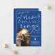 Pour toujours a une belle bague à elle, Design moderne arche photo bleu et blanc faire-part fiançailles avec une illustration fiançailles anneau. Toutes les couleurs sont modifiables.