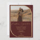Mieux ensemble, Simple fausse feuille or et rouge bordeaux moderne élégant fiançailles 2 photos faire-part avec un cadre géométrique arrondi.