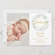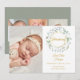 Une carte d'annonce de naissance à garland de laurier décoratif avec une photo de votre nouveau-né spécial. Personnalisez le message de remerciement et ajoutez le nom de votre bébé, les statistiques de naissance et 3 photos supplémentaires au verso. Conçu par Thisisnotme