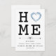 Announce your new location with this elegant and modern change of address card. The design features the word "HOME" with the letter "O" replaced by a beautiful blue floral heart wreath, giving it a warm, welcoming, and slightly rustic floral feel. Perfect for families like Richard, Robert, Romeo & Rachel who want a stylish and memorable new home announcement. Easily customize the new street address, city, and contact phone number.