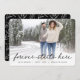 Annoncez votre fiançailles avec ces magnifiques cartes à fond saigné minimaliste avec une photo horizontale ou orientée paysage avec "éternellement commence ici" superposées en écriture manuscrite noire. Personnalisez avec vos faire-part, noms et détails supplémentaires.