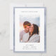 Les cartes de faire-part fiançailles chic et minimaliste comportent une photo verticale ou portrait orientée sur un arrière - plan blanc avec une fine bordure de bande d'aquarelle dans des tons éthérés de bleu poussiéreux. "Forever Starts Here" apparaît en haut dans les lettres modernes, avec vos faire-part, noms et détails supplémentaires en bas.