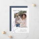 Partagez l'actualité de votre fiançailles avec ces cartes de faire-part élégantes et modernes, avec une photo verticale ou orientée portrait, avec vos noms superposés à chaque coin, et un esperon esquissé à la main surdimensionné. Personnalisez avec trois lignes de texte personnalisé en bas pour plus de détails ou votre site Web mariage.