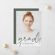 Faire-part moderne de graduation pour votre classe de 2022 grad dispose d'une seule photo verticale / portrait orienté, avec "grad" le bas en vert foncé écriture manuscrite. Le nom et l'école du diplômé apparaissent en bas. Ajoutez un faire-part personnel à l'arrière, ainsi qu'une photo supplémentaire.