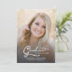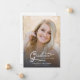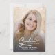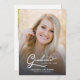 Script simple et moderne avec deux photos Faire-part de graduation. Doté d'une photo pleine dimension sur le devant avec une superposition de texte blanc et d'une photo sur le côté arrière avec des détails optionnels.