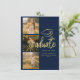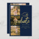 Graduation 4 Photo Collage Script Marine Blue Gold Faire-part pour la classe de 2025. Customisez facilement en changeant le texte et en remplaçant les photos par les vôtres. Une façon moderne et moderne d'annoncer votre diplôme cette année!