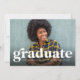 Avec un audacieux diplômé rétro en police de caractères, ce carte photo unique est le moyen parfait pour annoncer votre grade à votre famille et à vos amis. Le style vintage est subtil et simple pour ce faire-part de graduation et parfaitement sur la tendance pour cette classe de graduation. Le dos de cette carte est bleu marine avec une texture tachetée. Vous pouvez modifier la couleur bleue en cliquant sur "customiser plus loin".