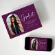 Faire-part tendance de remise des diplômes avec la photo du diplômé encadrée par une arche violette avec "Graduate" dans une écriture manuscrite blanche. Personnalisez l'avant de la carte de faire-part de remise de diplômes en arc en ajoutant le nom du diplômé, l'année de remise de diplômes, le nom de l'école et les plans futurs. La faire-part de graduation de la photo s'inverse pour afficher un motif pointillé violet et blanc. Le faire-part convient aussi bien aux diplômés du secondaire qu'aux diplômés du collégial.