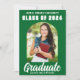 Ce faire-part moderne vert et blanc personnalisé de deuxième cycle photo avec le nom de votre lycée ou collège pour la classe de 2024. Customisez avec votre nom sous l'écriture manuscrite chic et audacieuse pour une grande carte de graduation personnalisée. Ajoutez une 2ème photo complète sur le dos.