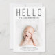 Cette carte de faire-part de naissance photo élégante et élégante à deux faces comprend quatre (4) photos (avant et arrière) de votre nouveau-né garçon ou fille, texte personnalisé qui peut être personnalisé, et un texte qui dit "HELLO" en police bloquée. Customisez ce produit en ajoutant le nom de votre nouveau-né, les photos, le dossier de naissance et le nom des parents. Design noir & blanc simple et moderne.