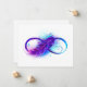 Infinity symbole with a beautiful feather painted in purple and blue bright colors on white background