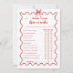 Calligraphie en aquarelle avec italien ondulé rouge Thème Douche nuptiale ou jeu d'questions