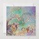 Capricieux, élégants, tourbillons artistiques et poussières de fée en sarcelle, bleu aqua, couleurs vertes et étincelles dorées. Détail d'un triptyque, peinture mixte avec feuille d'or et d'argent, 2009. Le thème concerne les archétypes et le symbolisme alchimique médiéval. C'est une vision distillée de l'imaginaire collectif occidental et oriental cherchant des images lointaines dans les profondeurs du mystérieux jardin des ombres perdues.