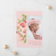 Elégante carte de modèle faire-part de naissance avec des illustrations florales de roses roses, lavande et feuillage vert sur le devant. Le dos révèle un arrière - plan de pois rose. Il y a 3 photos de votre nouveau-né qui peuvent être ajoutées sur cette carte (avant et arrière). Carte parfaite pour annoncer l'arrivée de votre nouveau bébé avec ses statistiques de naissance. Idéal pour le bébé garçon et la fille. Parfait pour les saisons d'été et de printemps !