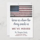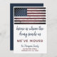 Home is Où l'armée nous envoie ! Annonces de déplacement militaire du drapeau rustique américain. Ces annonces rustiques du PCS Move du drapeau américain sont parfaites pour une faire-part mobile militaire, des annonces de déménagement de l'armée. Personnalisez ce drapeau américain en mouvement faire-part avec votre nom de famille, et nouvelle adresse. Voir notre collection pour apparier des cadeaux de déménagement militaires et des cadeaux de déménagement. DROIT D'AUTEUR © 2021 Judy Burrows, Black Dog Art - Tous droits réservés. Le PCS militaire nous avons déplacé le Faire-part du drapeau américain de l'armée
