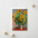 Carte représentant la peinture à l’huile de Claude Monet Bouquet of Sunflowers (1881). Beaux tournesols dans un vase bleu au-dessus d'une table rouge. Un grand cadeau pour les amateurs d'impressionnisme et d'art français.