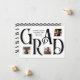 Cette carte de faire-part de graduation présente un design frappant avec le mot "GRAD" en grandes lettres serif classiques, créant un impact visuel audacieux. Chaque lettre est soigneusement placée pour présenter trois photos personnelles, ce qui vous permet de mettre en valeur des moments chéris. La typographie élégante contraste magnifiquement avec l’arrière - plan blanc immaculé, tandis que le texte personnalisé ajoute une touche raffinée pour célébrer le jalon du diplômé. Le dos comprend un motif zigzag coloré pour correspondre à l'avant. Parfait pour partager en famille et entre amis pour marquer cette fière réussite ! Disponible dans les couleurs standard de l'école de noir, rouge, orange, vert, bleu, violet, marron, et brûlé orange ou modifier pour correspondre aux couleurs de l'école.